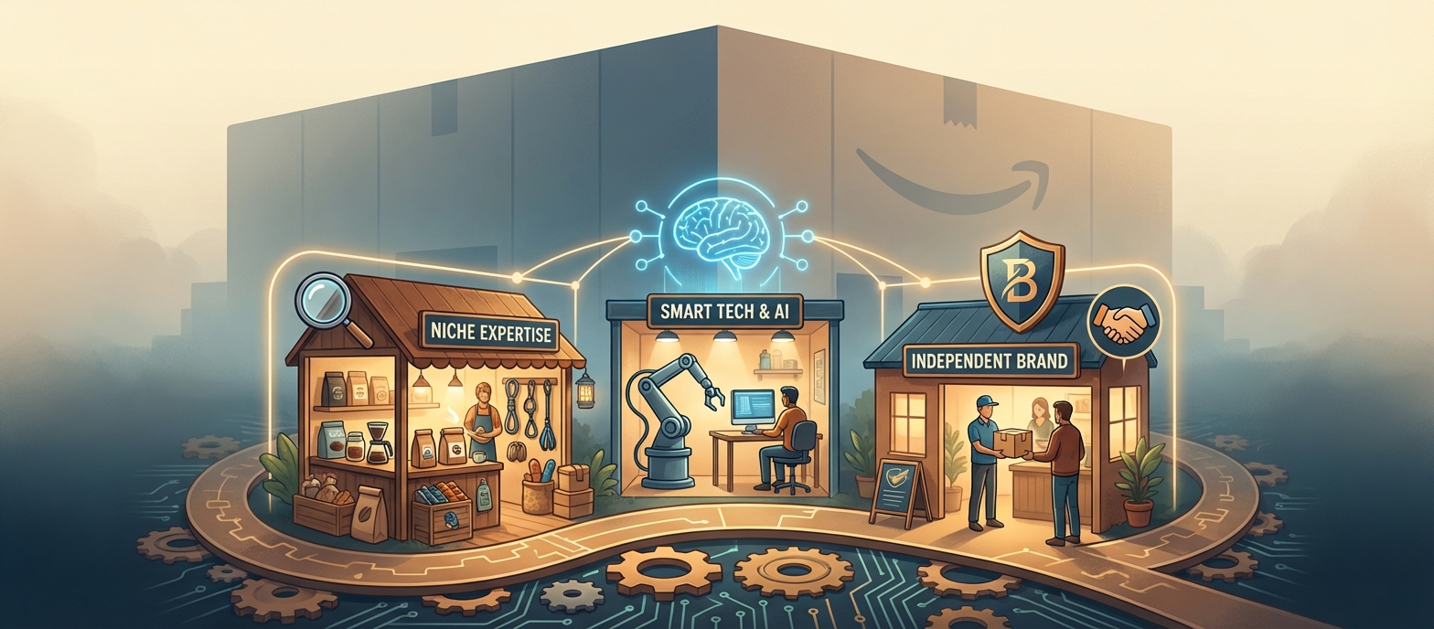 Sua PME pode competir com a Amazon? Descubra estratégias práticas de nicho, IA e branding para se destacar e prosperar no e-commerce de 2026.