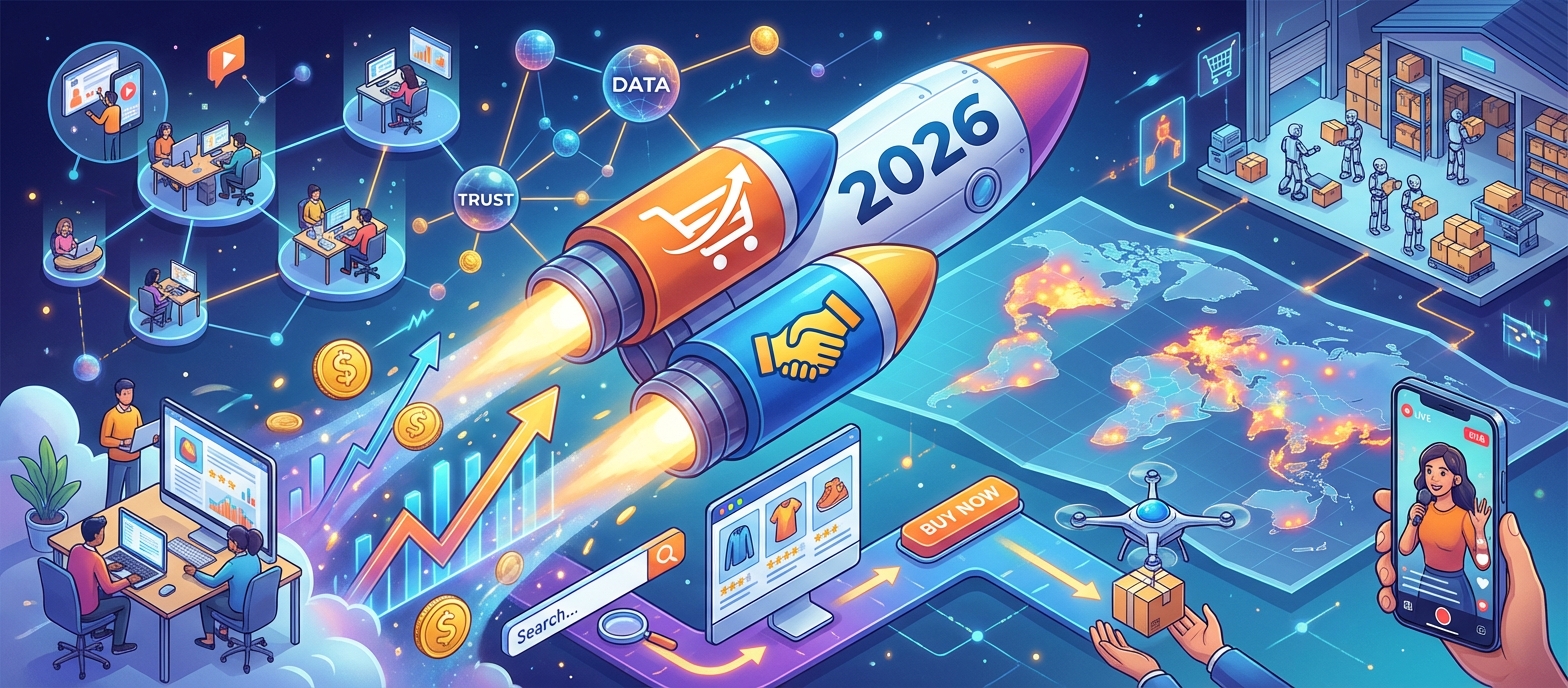 Descubra como o futuro do e-commerce se desenrola em 2026 com IA, novas tributações e crescimento regional. Prepare sua estratégia para vender mais.