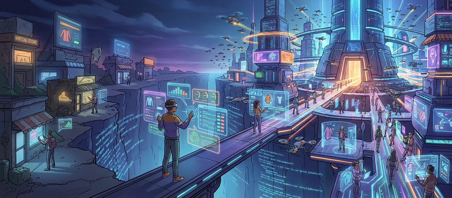 Descubra o futuro do e-commerce: a união da IA, como no caso da Amazon, e a experiência física da Shein. Prepare sua loja para as tendências de 2025.